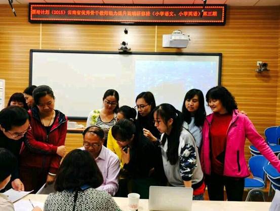 2016年5月8日上午,国培计划(2015)云南省优秀骨干教师能力提升高端研修班(小学语文、小学英语)第三期集中培训在华中师范大学职业与继续教育学院如期开班。本次培训的第一堂课是华中师范大学教师教育学院党委书记、教授吴伦敦为学员们进行教科研论文点评。吴教授结合学员论文的共性问题进行了集中讲解,并针对每一名学员论文写作中出现的个性问题进行个性化指导。吴教授在课间休息时,也在给学员们进行专业指导。吴教授和蔼可亲的教态、博大精深的专业造诣、严谨认真的治学态度赢得学员们的阵阵掌声。吴教授的指导给学员们今后的论文写作奠定了坚实的基础。