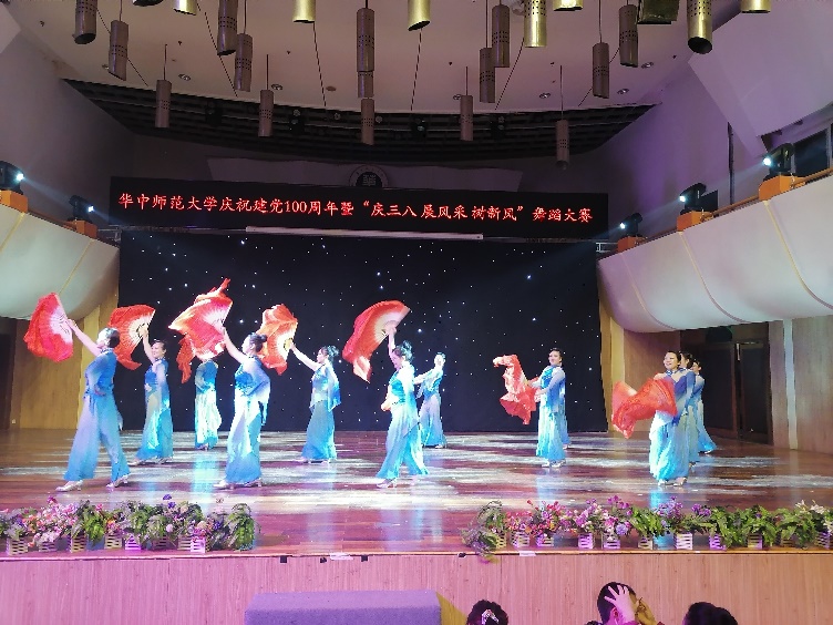 (通讯员:杨晓丽) 巾帼跟党走、建功新时代。华中师范大学第五届女教职工“庆三八展风采树新风”舞蹈大赛3月7日在学校音乐厅隆重举行。湖北省教科文卫体工会副主席赵黎、校党委副书记查道林等领导嘉宾出席活动。全校31支舞蹈队参与大赛表演,为观众献上了一场视听盛宴。培训中心舞蹈队《祖国,你好!》斩获“最佳风采奖”。