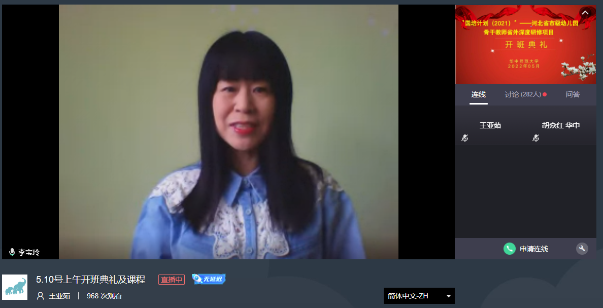 (通讯员 杨晓丽)2022年5月10日上午8点30分,华中师范大学承办的 “国培计划(2021)”河北省市级幼儿园骨干教师省外深度研修项目(线上)顺利开班。