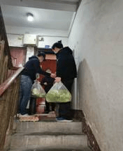 武汉封城期间,无论哪个社区,高龄老人、独居老人、患基础疾病的弱势群体都是需要重点关注的对象,他们网购物资、寻医问药、圈存煤气等都不方便,有的甚至不会上报体温,这些都需要志愿者无微不至的帮助。支部下沉党员每天做到三个“一”,即一个电话、一声问候、一份关心,每天跟他们电话沟通,询问他们的健康状况,了解体温,是否有其他身体不适,是否有药品或物资需求等等。党员志愿者帮这些弱势群体扛米送菜,买油购蛋,求医送药。只要居民需要帮助,党员志愿者就第一时间出现。