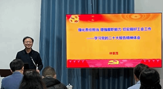 全体与会会员投票后,中心党委林更茂书记结合学习党的二十大报告及新颁布的《工会法》,作了《强化责任担当 增强履职能力 切实搞好工会工作》的讲话。林书记对中心第二届工会委员会五年来的工作给予了充分肯定,对工会工作的重要性依据工会法进行了解读,特别强调了党的二十大报告中的有关工会工作的重要表述:“深化工会、共青团、妇联等群团组织改革和建设,有效发挥桥梁纽带作用。”希望新一届工会委员会按照习近平总书记的指示,坚定不移走中国特色社会主义工会发展道路,坚守工会工作的主战场,狠抓工会工作的中心任务,模范履行工会组织的政治责任,更好发挥工会应有的作用,为中心事业发展做出新的更大贡献。
