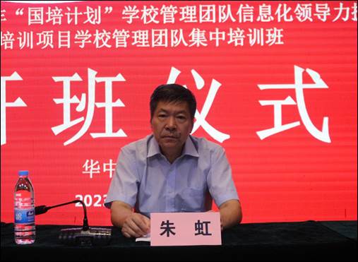 开班典礼伊始,华中师范大学培训中心副主任朱虹。他首先对筹办此次会议的商丘市教育局、商丘市4个县教体局表示诚挚的感谢,对参训团队表示热烈的欢迎。他对此次培训的项目背景、目标、任务要求进行了解读,并对管理团队提出了殷切期望。他希望各团队以此次国培为契机,认真学习领会工程2.0的要义,结合学校实际认真落实好。