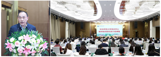 伴随着雄壮的国歌声,全场肃立致敬,仪式正式开始。华中师范大学党委副书记查道林在致辞中简要介绍了华中师范大学的发展历史、办学特色,以及近年来学校在教育信息化等领域取得的丰富成就。他强调学校高度重视与香港的教育交流合作,致力于打造立体的教育交流环境,学校与香港中联办、香港教育局等部门建立了长期、良好的合作关系。他祝愿本次活动将有助于香港新入职教师提升专业能力,加深对中华文化的认识和理解,促进鄂港两地教师信息化共享与共同发展,为香港的繁荣发展和中华民族的伟大复兴做出贡献。