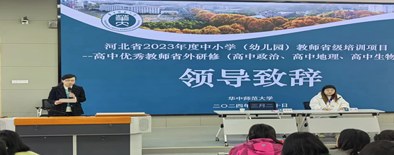 (通讯员:刘秭慧)2024年3月20日上午,由华中师范大学培训中心承办、河北省2023年度中小学(幼儿园)教师省级培训项目——高中优秀教师省外研修(高中政治、高中地理、高中生物)培训班正式开班。华中师范大学培训中心副主任潘珞琳出席,培训中心专职班主任及150位参训学员参加。开班典礼由班主任周敏老师主持。