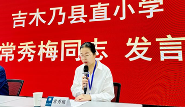 学员代表吉木乃县直小学校长常秀梅校长代表全体学员发言,她感谢自治区教育厅提供的宝贵学习机会,感谢华中师范大学对培训课程的精心安排设计。教育是国家发展的基石,作为学校领导肩负着重要的责任和使命,必须不断提升自我,以适应教育发展的新形势。她代表全体参训学员表示一定会倍加珍惜这次难得的学习机会,严格遵守培训纪律、认真听讲、积极思考、主动交流,确保取得实实在在的成效,并将所学知识和经验带回学校,与全体教师共同分享,携手推动学校的发展,为新疆的教育事业贡献力量。