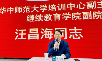 华中师范大学培训中心汪昌海同志致欢迎辞,他首先向远道而来的各位校长致以热烈的欢迎,并对新疆维吾尔自治区教育局的鼎力支持表示衷心的感谢。在对本次培训的学习形式和内容安排进行详尽阐述的同时,他强调培训不仅仅是一次简单的知识传授,更是一次提升自我、拓宽视野的宝贵机会。希望参训学员能够珍惜这次难得的机会,全身心地投入到学习中,通过系统的课程学习和实践交流,不断提升自己的专业素养和能力水平。汪昌海同志还特别强调了培训纪律的重要性,他要求学员们自觉遵守培训规定,尊重师长和同行,保持积极向上的学习状态。他相信在严格的纪律要求和浓厚的学习氛围下,学员们一定能够取得显著的进步和成长。