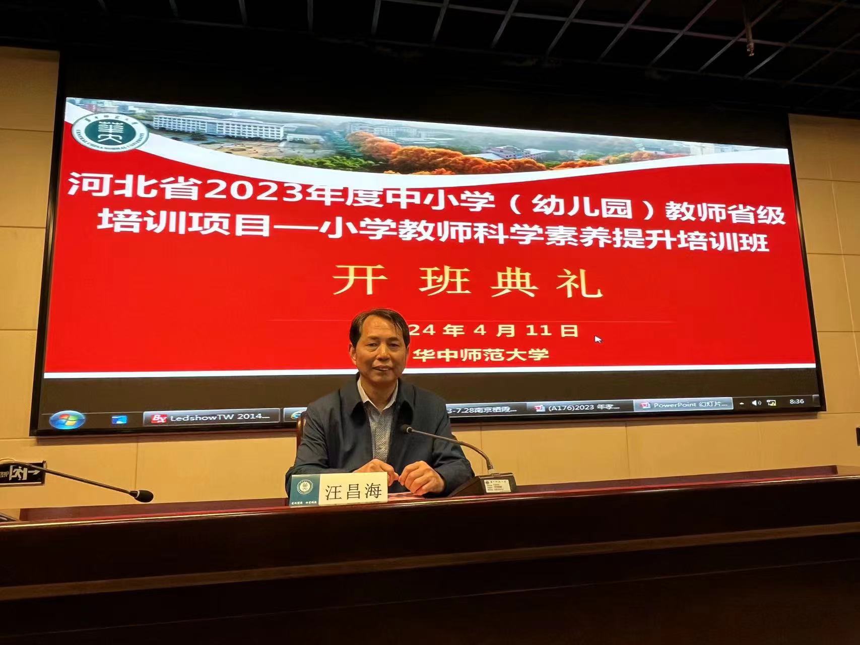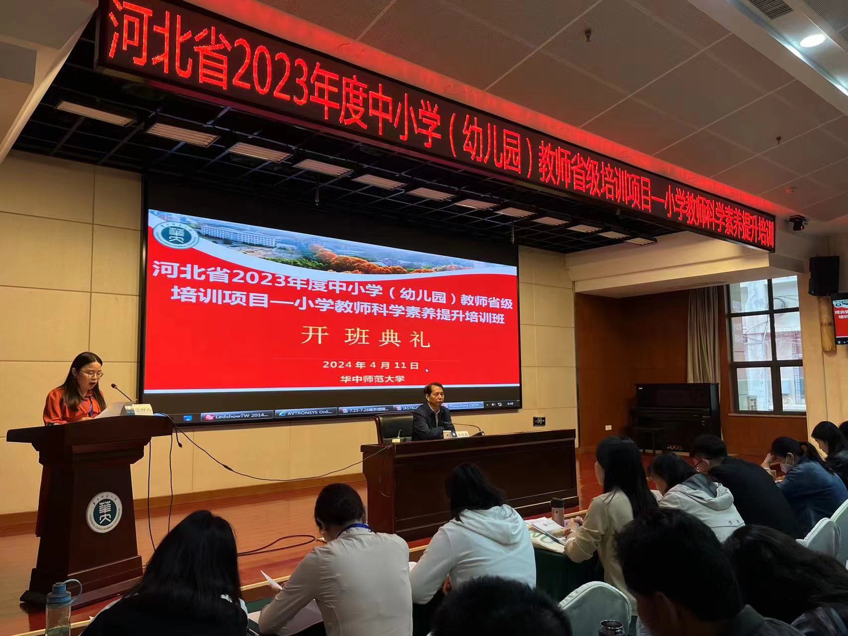 科学从未止步,探索不曾停止。培训如沐春风,细研阔步向前。2024年4月11日上午,由河北省教育厅主办,华中师范大学培训中心承办的河北2023年度中小学(幼儿园)教师省级培训项目——小学教师科学素养提升培训第1期于我校顺利开班。华中师范大学培训中心汪昌海副主任、华中师范大学6名专职班主任、以及来自河北省各学校300多名小学教师参加了此次开班仪式。