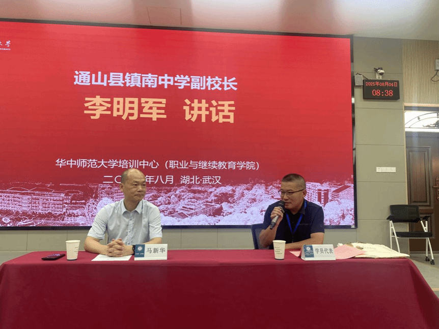 教育是一棵树摇动另一棵树,一朵云推动另一朵云,更是一颗心灵唤醒另一颗心灵。通山县镇南中学副校长李明军代表全体学员发言。他感谢华中师范大学为本次培训所做的精心筹备和安排,使通山县教师得以依托高水平平台提升心理健康教育专业能力。他指出,当前青少年面临学业压力、人际困扰及自我认同等多重挑战,亟需科学、专业、温暖的陪伴与引导。他代表全体学员承诺:将倍加珍惜此次培训机会,把培训所学转化为课堂内外的细腻行动,用共情的温度倾听,用科学的方法疏导,让心理健康教育如阳光穿透课堂,似雨露浸润成长,成为孩子们逐梦路上坚实的心灵屏障。