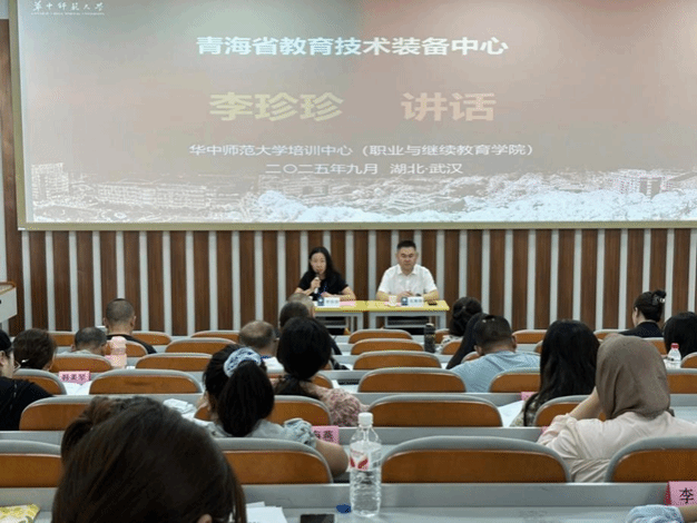 青海省技术装备中心李珍珍老师发表讲话。她首先代表青海省技术装备中心,向为本次培训倾注心血、提供大力支持的华中师范大学表示衷心感谢。接着,李珍珍老师对全体学员提出了三点要求: