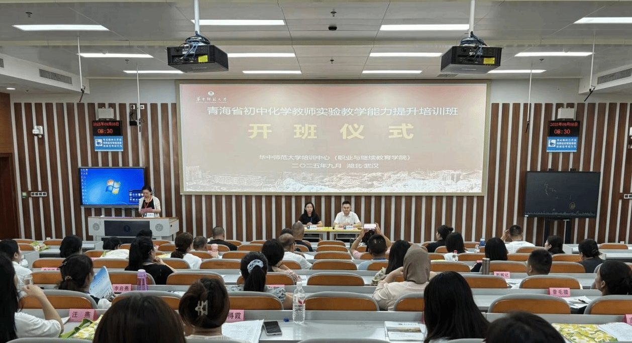 (通讯员:王星 袁锡胜 彭咏梅 李卉)金秋九月,桂子飘香。为深入贯彻新时代基础教育强师计划,提升初中化学教师实验教学核心能力,夯实学生科学素养根基,青海省初中化学实验教学能力提升培训班开班仪式于2025年9月8日上午在华中师范大学举行。华中师范大学培训中心副主任吴海涛出席仪式并致辞,来自青海省的45位初中化学骨干教师参加,共同开启专业成长新篇章。