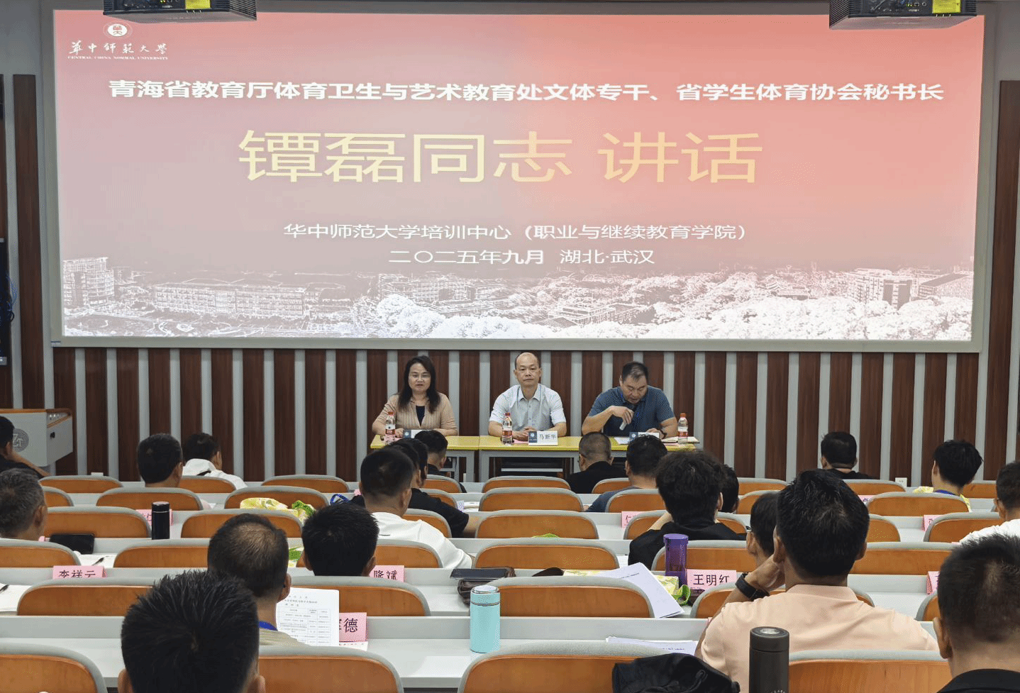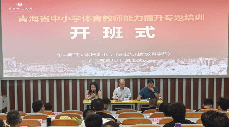 (通讯员:镡磊)2025年9月14日上午,由青海省教育厅主办、华中师范大学培训中心承办的“青海省中小学体育教师能力提升专题培训”在我校隆重开班。华中师范大学培训中心主任马新华、青海省教育厅体育卫生与艺术教育处文体专干、青海省学生体育协会秘书长镡磊出席开班仪式并致辞,青海省各市(州)中小学及省属学校的100名体育骨干教师参加了开班仪式。