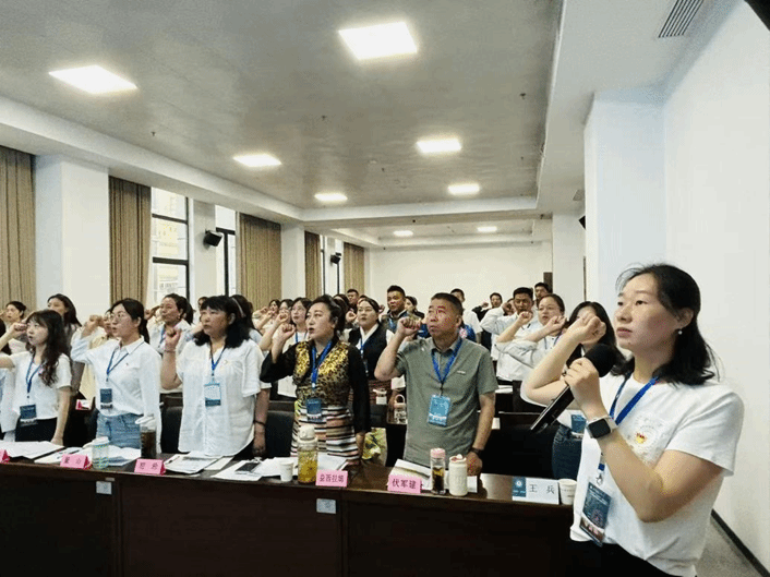 “我是一名光荣的幼儿园党组织书记,我郑重承诺:忠诚于党的教育事业,落实立德树人根本任务,为培养堪当民族复兴大任的时代新人,为推动西藏学前教育高质量发展,贡献全部力量!”在林芝市朗县幼儿园党支部书记唐慧的领誓下,全体学员举起右拳、目光坚毅,庄严宣誓。铿锵有力的誓言在教室中回荡,这既是对教育事业的庄严承诺,也是对“红色育人”神圣使命的自觉担当。