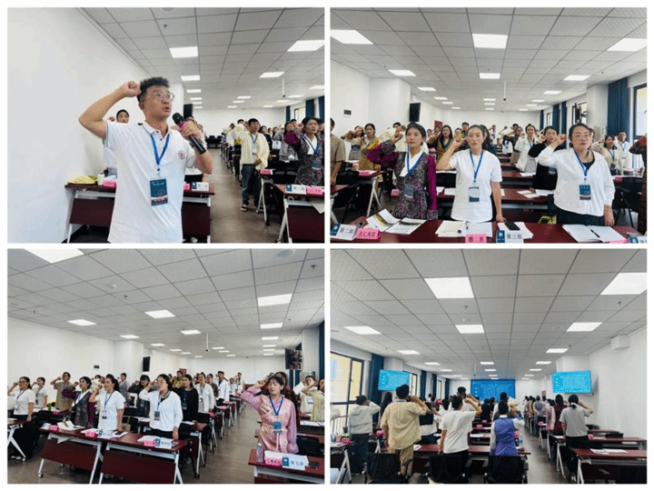 在学员代表、拉萨市林周县阿朗乡中心幼儿园教师席培书的领誓下,全体学员高举右拳,庄严宣誓。“国运所系,使命在肩。我是一名光荣的人民教师,深知育人之重、托付之深。在此,我庄严宣誓……为西藏自治区教育事业的蓬勃发展,为国家与民族教育事业的进步,贡献自己的全部智慧与力量!”铿锵有力的誓言,是他们对教育事业的忠诚承诺,也是对高原未来的无限憧憬。