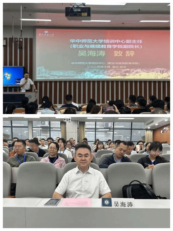 开班仪式在庄严的国歌声中拉开帷幕。华中师范大学培训中心副主任吴海涛发表热情洋溢的致辞。他首先对远道而来的新疆生产建设兵团的教育同仁们表示热烈的欢迎,并对新疆生产建设兵团教育局的信任与支持致以诚挚感谢。他回顾了华中师范大学自1903年建校以来122年的办学历史,介绍了“忠诚博雅、朴实刚毅”的华师精神,并重点分享了学校在教师教育领域的卓越成就,如学校拥有3个国家“双一流”建设学科,教育学在第五轮学科评估中获评A+等。