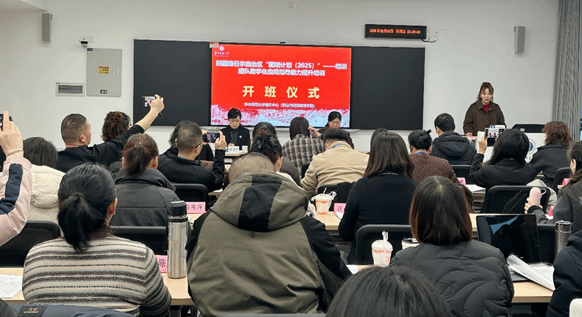 (通讯员:揭丽 秦立全)2025年12月24日上午,为进一步提升新疆维吾尔自治区教育团队数字化应用指导能力,推动区域教育数字化转型与高质量发展,新疆维吾尔自治区“国培计划(2025)”——培训团队数字化应用指导能力提升培训开班仪式在华中师范大学顺利举行。