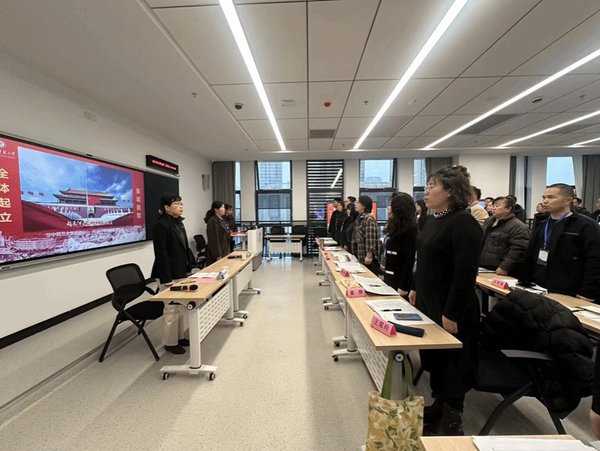 开班仪式在庄严的国歌声中拉开序幕。华中师范大学培训中心潘珞琳副主任在致辞中对远道而来的新疆教育同仁表示热烈欢迎和诚挚问候。她回顾了华中师范大学自1903年建校以来的办学历史,介绍了学校“忠诚博雅、朴实刚毅”的精神以及在教师教育领域的突出成果,如教育学在第五轮学科评估中获评A+,拥有3个国家“双一流”建设学科。她强调,教育数字化转型已成为国家战略部署,要全面提升教师数字素养,推动数字技术与教育教学深度融合,助力教师实现从“技术认知”到“融合创新”的跨越,确保培训成果落地生根。