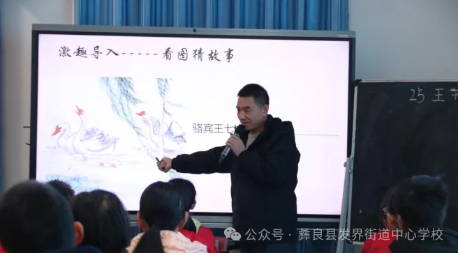 5日上午的活动是由发界街道中心小学李成飞老师带来的展示课四年级课文《王戎不取道旁李》。李老师在课堂中对范读的引导,让孩子们身临其境感受到文言中的王戎是一个不仅聪慧而且又细心的孩子。在课堂一问一答中对孩子们智慧的启迪做得恰到好处。