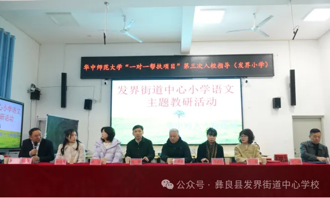 本次入校指导的专家为湖北省特级教师沈爱华、华中师范大学附属小学教育发展研究院院长危雄、彝良县教体局教研室梁红、王成,湖北省第八届青教赛一等奖孙迎苹、武汉市蔡甸区第四小学教科室主任肖李姣。彝良县华中师大正在培训培养的彝良县“三名教师”,发界街道中心小学全体语文、数学教师及全体班子成员参与本次教研帮扶活动。