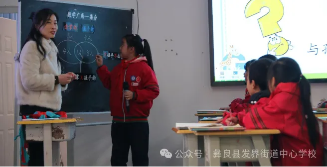 华师附小孙迎苹老师在执教《集合》时,更是把简单的集合概念用图示的方式加以阐释,课堂中在老师的引导下孩子们知道了怎样把集合加以运用。兴奋的神情溢于言表,眼神中全是对老师敬佩的目光。