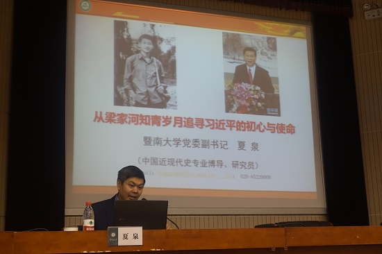 (通讯员 王凡 张枫林)11月10号下午,暨南大学党委副书记夏泉教授为全国高校教师党支部书记“双带头人”高级研修班作了题为《从梁家河知青岁月追寻习近平的初心与使命》的专题报告。