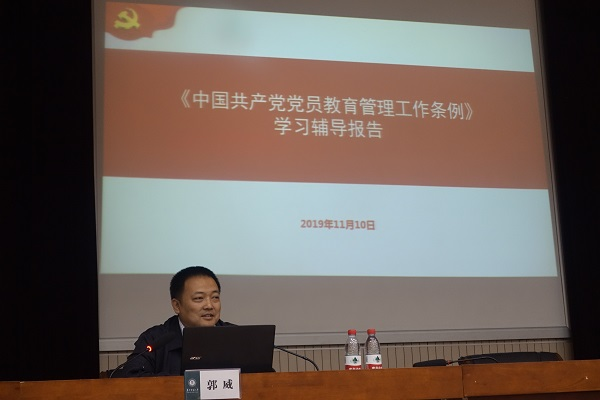 (通讯员 刘瑞 曹云升)11月10日上午,中央组织部党员教育中心一处副处长郭威为全国高校教师党支部书记“双带头人”高级研修班作了题为《学习贯彻<中国共产党党员教育管理工作条例>,切实做好新时代党员教育管理工作》的主题报告。