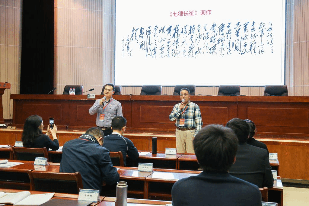 这堂红色主题音乐党课同时还给了我们很多惊喜,并为本次主题音乐党课带来了不小的高潮。在互动环节,来自中国地质大学(北京)地球物理与信息技术学院教工第一支部党支部书记李信富同志和北京语言大学马克思主义学院教工党支部书记杨林坡同志精彩的《长征》词朗诵;中央音乐学院音乐学系党支部书记刘小龙同志与北京中医药大学中医学院循证医学中心党支部书记曹卉娟同志男女生对唱,同时带领大家合唱《解放区的天》,仿佛将大家带入那个时代。