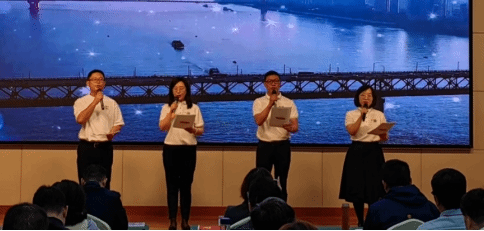“历史回响”篇章,回顾了中国共产党从1921年成立到新时代的辉煌成就。一曲“时间都去哪儿了”将学员拉回到中国共产党初创时那个动荡不安的年代,李大钊“以青春之我,创建青春之家庭、青春之国家”的革命理想在心中激荡,第二组学员饱含深情地朗诵《牺牲》致敬革命先烈。历史的篇章一幕幕重现在大屏幕上,令学员由衷地感叹,从毫米之微到万里之遥,唯有奋斗!