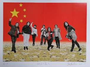 欧阳红老师的作品《快乐一家人》,是电脑版画,取材于我们中心(学院)这个大家庭的人物形象。背景图面运用国旗,地面铺设的是银杏叶。作品渲染了我校教职工对祖国、党的热爱之情。据欧阳红老师介绍,时值我们伟大的党成立100周年之际,她更希望能通过作品记录下我们这一代生在红旗下、长在红旗下的幸福生活;记录下我们中心(学院)这个团结、奋进、快乐的大家庭。