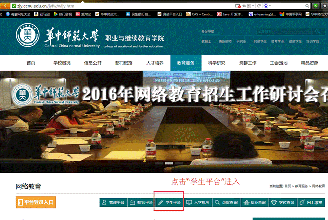 请登录http://zjy.ccnu.edu.cn/jyfw/wljy.htm考试,具体方法请仔细查看图片。