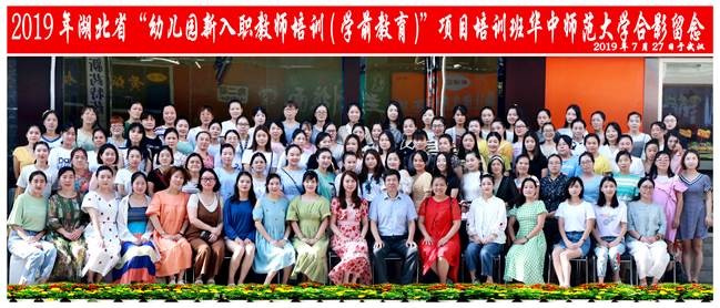2019年7月27日上午,国培计划(2019)湖北省“幼儿园新入职教师培训(学前教育)”项目(B007)正式在武汉开班。炎炎夏日,来自湖北省荆州市、天门市、神农架等99位新入职的幼儿教师聚集一堂,参加由华中师范大学承办的此次培训,开班典礼现场气氛浓厚而热烈。开班典礼由班主任胡晓红老师主持,华中师范大学培训中心副主任(职业与继续教育学院副院长)朱虹和教师培训部杜芳主任、王静副主任等领导莅临会场。