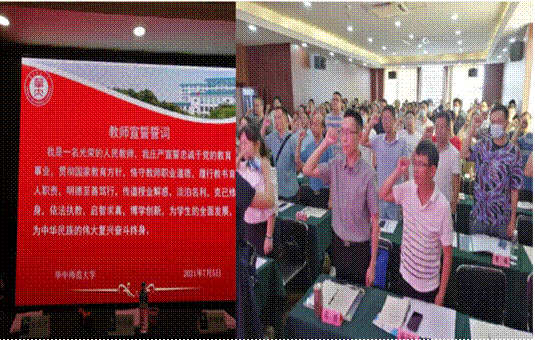 紧接着,由班委宣传委员唐书航老师带领全体学员宣誓“我是一名光荣的人民教师,我庄严宣誓……为学生的全面发展,为中华民族的伟大复兴奋斗终身。”铿锵恢宏的誓词,神圣而豪迈,体现每一位老师对教育的无限热爱与忠诚。