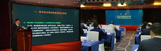 严继昌秘书长首先从政策层面向与会代表传达了教育部发展继续教育的总思路及相关精神。然后就提高教学质量需整体解决方案提出了十个方面的工作任务。