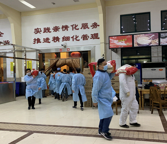 为助我校抵抗疫情,河南省息县火线驰援,向我校捐助各类防疫物资100吨。2月19日晚,满载物资的5辆卡车缓缓驶入校园,学校后保部和保卫处人员全力奋战四个小时后仍面临着满满三车物资的卸载任务,当此之时,后保部向学校防疫指挥部紧急求援。看到应急人员群的求援信息,虽然指挥部还没有发出通知,而且已是晚上九点多钟,我院宋卫东同志仍没有一丝犹豫,第一时间从校外赶往学校,随后王国德同志也赶赴了现场,二话不说便加入了卸载队伍。
