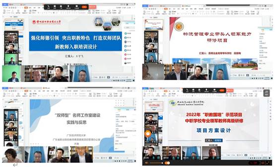 由于国内防控形势严峻复杂,项目经申请转为线上实施。为此,项目工作组迅速组织线上培训,搭建学习平台,将专家授课和学员交流、互动紧密结合起来。在项目课程安排方面,项目工作组聘请了国内知名职教专家、培训管理专家,保障项目实施中的课程能够涵盖职业教育和职教培训的特点,揭示和探索职业教育规律。在授课形式方面,项目通过专家讲座、案例教学、研讨交流、学员方案设计、专家集体诊断点评等形式,充分发挥线上多媒体教学的优势,引导学员积极参与课题讨论,充分交流,解决工作中的疑难问题。