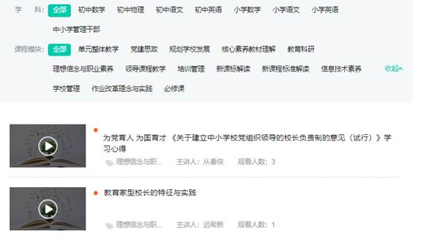本次在线自主选学培训一共分为8个研修班,分别是:小学语文教师班、初中语文教师班、小学英语教师班、初中英语教师班、小学数学教师班、初中数学教师班、初中物理教师班、教学副校长、教务主任和教科主任班。研修课程设置上,包含了党建思政、信息技术素养、作业改革理念与实践、新课标解读、教材理解、学校管理、教育科研等方面的内容。
