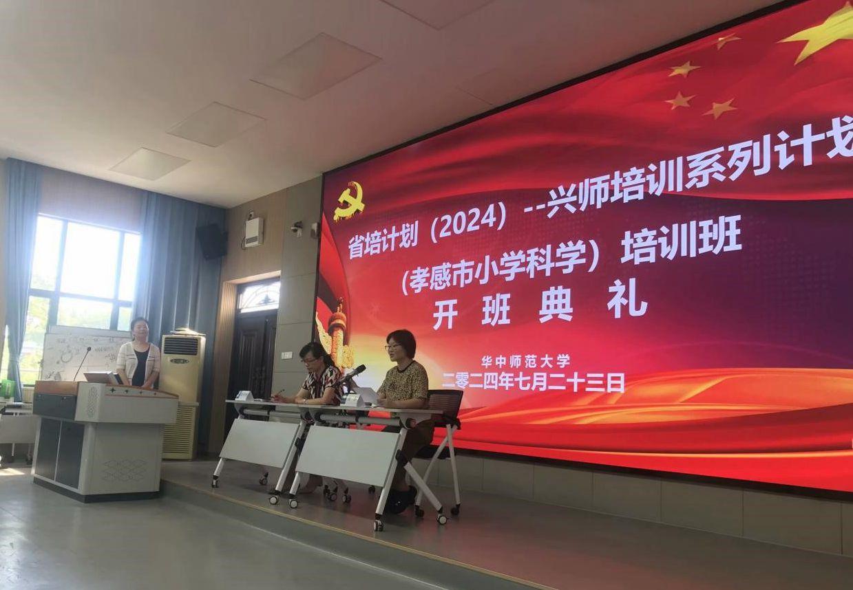 (通讯员:叶会明、钱洁、魏瑶、褚宁君)2024年7月23日上午,2024 年“省培计划”——兴师培训系列计划(孝感市小学科学)”项目在华中师范大学开班。华中师范大学培训中心副主任潘珞琳出席仪式并讲话,班主任彭咏梅、张敏老师,以及 70 位参训学员共同参加本次开班典礼。开班典礼由班主任彭咏梅老师主持。
