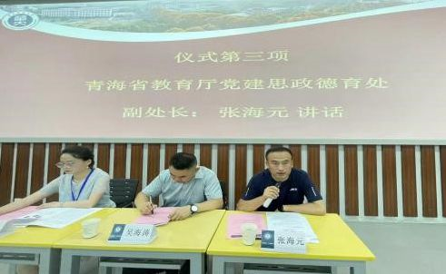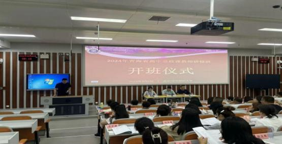 (通讯员:付鑫、王乾、万敏)2024 年 8 月 6 日上午,2024 年青海省高中思政课教师研修在我校顺利开班。华中师范大学培训中心副主任吴海涛、青海省教育厅党建思政德育处副处长张海元出席典礼并讲话。华中师范大学培训中心班主任和青海省各市州的 80 位优秀高中思政教师参加了开班典礼。