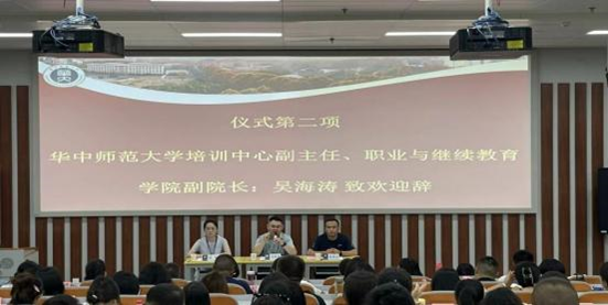 吴海涛副主任在欢迎辞中,简要介绍了华中师范大学的发展历程、校训“求实创新,立德树人”以及“忠诚博雅,朴实刚毅”的华师精神。他接着向学员们介绍了华中师范大学培训中心的发展现状,并着重阐述了本次培训的实施背景。为确保培训质量,培训中心项目组精心策划,邀请国内知名专家和一线名师进行专题授课。此外,他还提醒学员和授课教师关注防暑、安全等。通过思想的碰撞与交流,他期待本次培训能够实现预期目标,并预祝培训圆满成功,学员们满载而归。