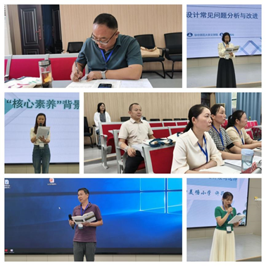 下午,华中师范大学语文教育教研室陈秀玲副教授给我们带来《教学设计常见问题分析与改进》讲座。陈博士以“我的学生在哪里?”“我的学生要到哪里?”“我的学生怎样到达那里?”“到了没有?”几个问题开启精彩讲座。她从素养导向的学习和学习内容的分析、基于教学评一致性设置学习目标、基于逻辑的教学环节设计、如何布置一份受学生欢迎的作业四个方面进行理论指导。陈博士丰富的讲座内容使参训教师收获颇丰。
