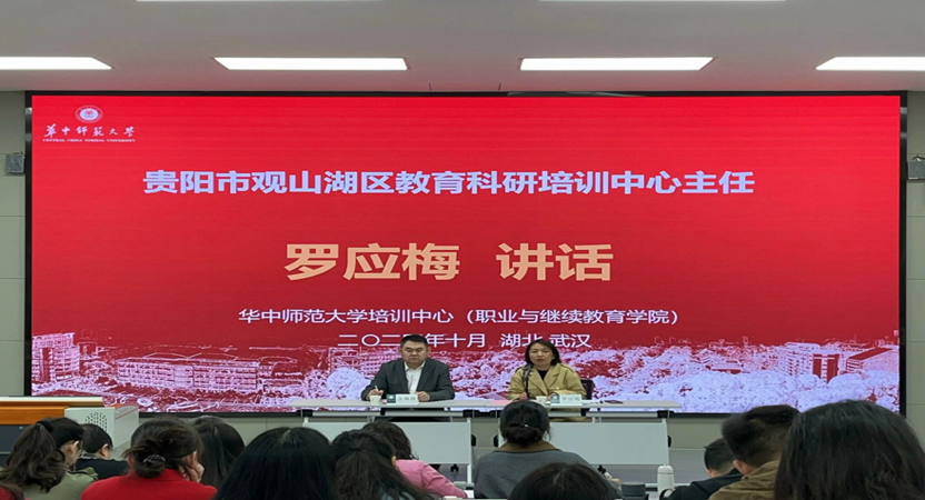 (通讯员:粟林 王亚)2024年10月22日上午,2024年观山湖区中小学教师培养三年行动计划“观山望月”行动之教导主任专项培训在华中师范大学顺利开班。华中师范大学培训中心副主任吴海涛、贵阳市观山湖区教育科研培训中心主任罗应梅出席开班典礼并讲话,观山湖区各中小学80名教导主任参加了本次开班典礼。