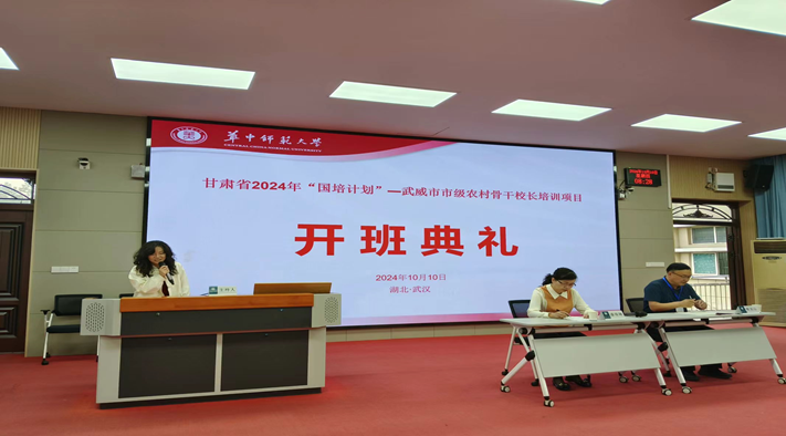 (通讯员:丁学民)2024 年 10 月 9 日上午,“国培计划2024”武威市市级农村初中骨干校长培训项目开班典礼在华中师范大学七号教学楼隆重举行。华中师范大学培训中心副主任潘珞琳出席仪式并发言,班主任陈迪老师、张敏老师和武威市三县一区的 55 名初中骨干校长共同参与开班典礼。开班典礼由班主任陈迪老师主持。