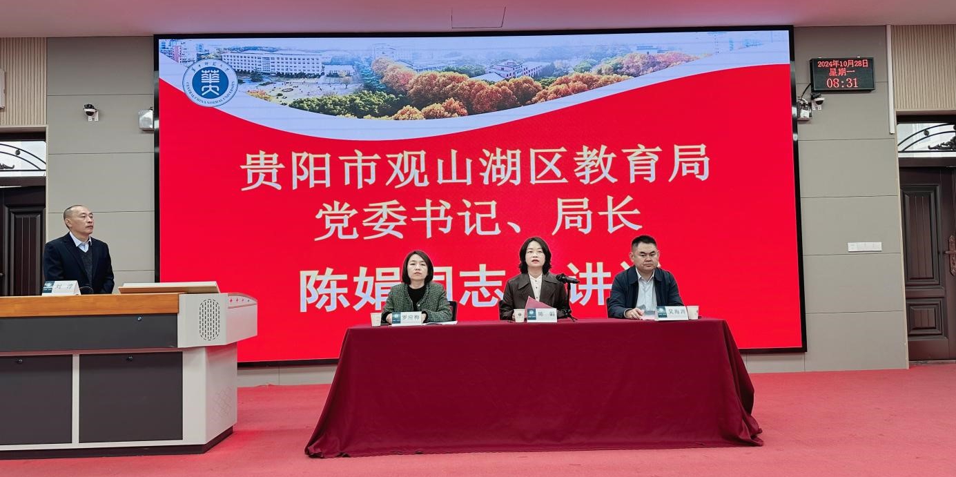 观山湖区教育局党委书记、局长陈娟同志作重要讲话。她提出培训主题“观山望月”有两层含义:一是脚踏实地,立足实际;二是仰望星空,追求更加高远的教育目标。此次培训旨在打造一批具有先进的教育理念、卓越的管理能力、深厚的教育情怀的校长队伍。希望各位学员在接下来的学习中,明确目标,增强责任感、使命感;珍惜机会,全身心投入学习;学以致用,将理论与实践相结合;加强交流,共同促进发展;严格管理,确保培训安全。希望参训学员不断提高自身专业素养和管理能力,创新管理模式,共同点亮孩子们未来的明灯。