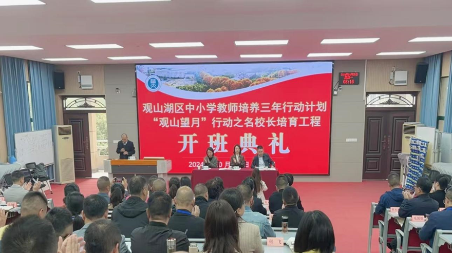 (通讯员:朱彧 周玮)2024年10月28日,2024年观山湖区中小学教师培养三年行动计划“观山望月”行动之名校长培育工程开班仪式在华中师范大学顺利举行。观山湖区教育局党委书记、局长陈娟,华中师范大学培训中心副主任吴海涛出席典礼并致辞,观山湖区各中小学100名书记、校长参加了本次典礼。典礼由华中师范大学培训中心培训部部长刘淳主持。