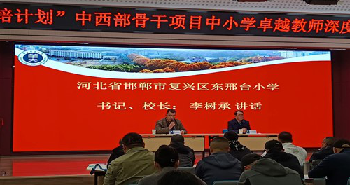 学员代表邯郸市复兴区东邢台小学的书记兼校长李树承发表了讲话,他结合自身的基层教育实践经历,向全体学员提出了几点共勉的期望:一是希望每位学员都能深植教育情怀,怀揣着空杯心态,全身心投入学习,积极践行“五育并举”的教育理念,全面促进学生的全面发展。二是倡导以实践为衡量标准,鼓励大家在教学领域不断探索与创新,做到知行合一,将理论知识与实践紧密结合,提升教学质量。三是强调责任与担当,希望学员们能够为推动区域教育的优质均衡发展贡献力量,通过自己的所学所得反哺乡村教育,为乡村教育的繁荣注入新的活力。