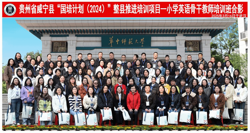 (通讯员:柴英 彭咏梅 李卉)2025 年 3 月 16 日,贵州省威宁县“国培计划(2024)”——整县推进培训项目小学英语骨干教师培训班开班典礼在华中师范大学7号教学楼正式启动。此次培训旨在提升威宁县小学英语骨干教师的专业素养和教学能力,推动当地小学英语教育的高质量发展。华中师范大学培训中心副主任潘珞琳出席开班典礼并致辞,来自威宁彝族回族苗族自治县各小学的 100 位英语骨干教师参加了此次典礼。