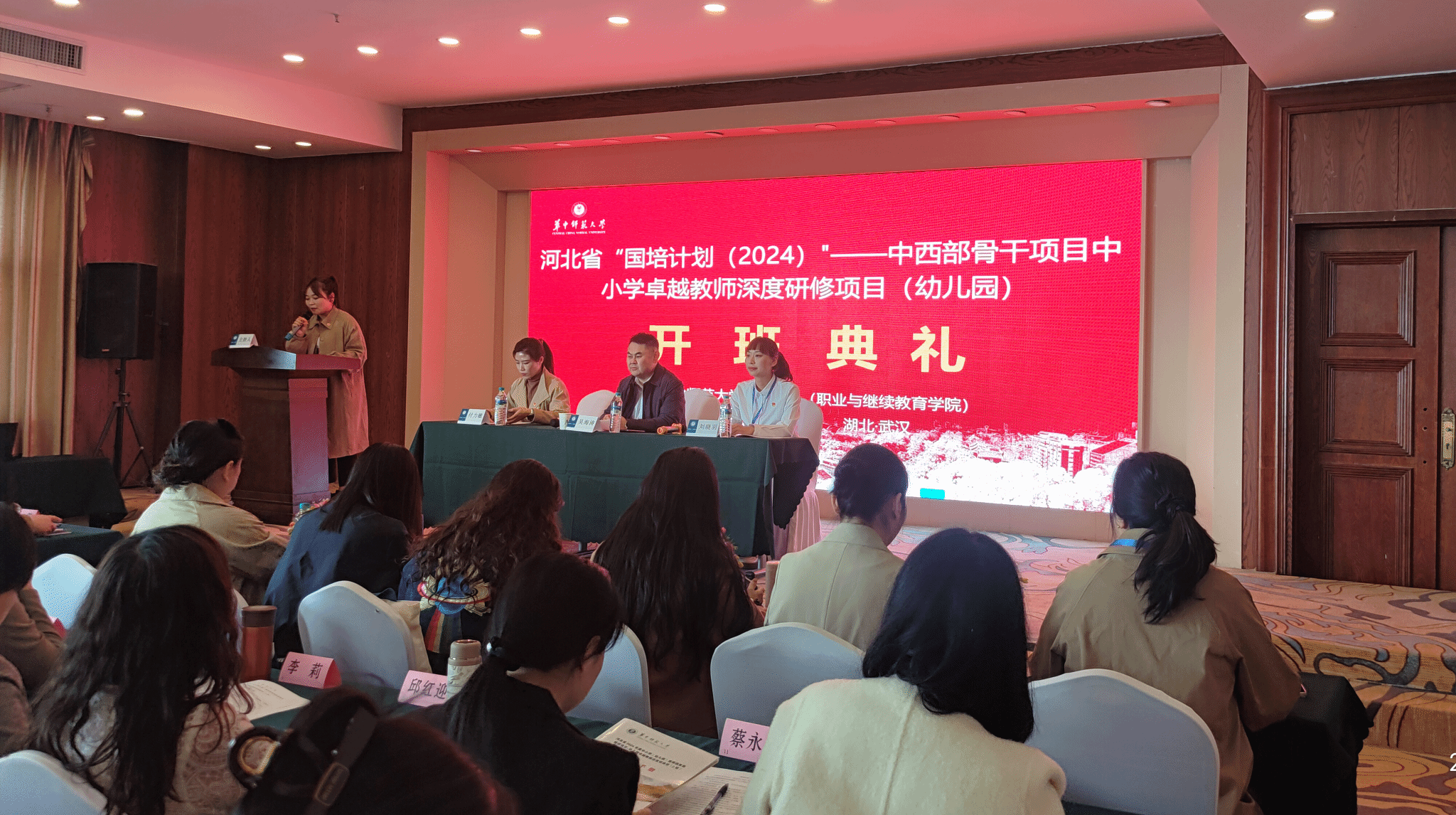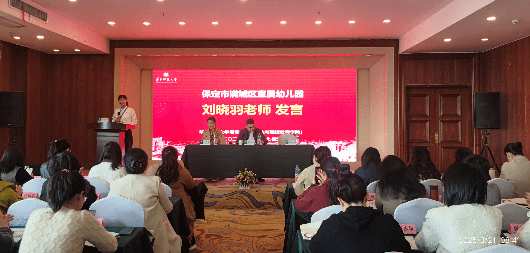(通讯员:许琳琳 陈迪 王乾 揭丽 秦立全)为进一步加强河北省幼儿园教师队伍建设,提升教师专业素养和教育教学水平,2025 年 3 月 21 日,由河北省教育厅主办、华中师范大学培训中心承办的河北省2024年度中小学(幼儿园)教师国家级培训项目——幼儿园卓越教师深度研修培训班开班仪式在我校隆重举行。华中师范大学培训中心副主任吴海涛出席仪式并致辞,来自河北省各地的 149 位幼儿园卓越教师齐聚一堂,共同参加了此次开班典礼。开班典礼由班主任揭丽老师主持。
