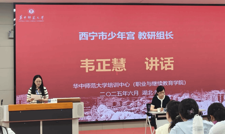 (通讯员:吴华钰 彭咏梅 李卉)为全面提升西宁市小学学科教育质量,切实增强小学教育的核心竞争力,2025年6月5日上午,由西宁市教育科学研究院主办、华中师范大学承办的西宁市小学学科骨干教师专题培训开班仪式在我校举行。华中师范大学培训中心副主任潘珞琳出席开班仪式并致辞。来自西宁市各小学的50名学科骨干教师齐聚华中师范大学,开启为期一周的沉浸式研修之旅。本次培训旨在通过名校赋能,助力西宁市小学学科骨干教师队伍更新教育理念、精进教学技能、强化示范辐射作用,为区域基础教育的优质均衡发展注入强大动能。