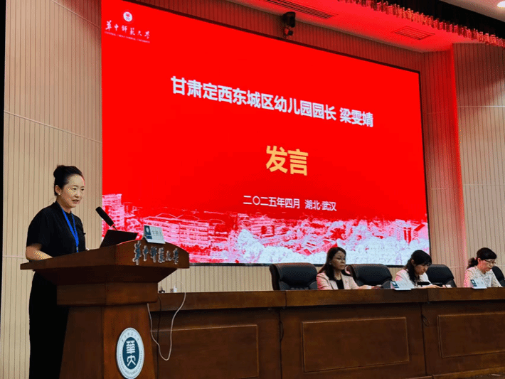 甘肃定西东城区幼儿园园长梁雯婧代表全体学员发言。首先,她向为提供此次宝贵学习机会并精心安排的领导和老师们表示衷心的感谢。梁雯婧园长表示,身为一线教育工作者,需常反思自身是否跟上时代步伐、能否用发展眼光看待工作,以及是否拥有个人的教育思想和见解。本次“2025年幼儿园园长课程领导力高级研修班”的举办,犹如一场及时雨,为教师们提供了一个学习交流、提升自我的平台。梁园长代表全体学员郑重承诺:在培训期间,将严格遵守培训纪律,按时参加课程学习,认真完成各项学习任务。积极参与课堂互动,虚心向专家和同行请教,努力汲取知识的养分。同时,也将所学的知识和理念带回自己的工作岗位,学以致用,推动学前教育事业的发展。