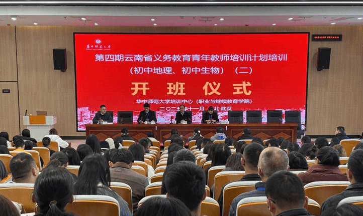 (通讯员:李圆 曹玫 彭咏梅 李卉 万敏 郭铁平)为深入贯彻国家及云南省关于加强义务教育教师队伍建设的决策部署,深化课堂教学模式改革,着力培养一批“能教书、会教书、教好书”的青年骨干教师,由云南省教育厅主办、华中师范大学培训中心承办的“第四期云南省义务教育青年教师培训计划初中生物(二)”开班仪式,于2025年11月26日上午在华中师范大学隆重举行。华中师范大学党委副书记查道林、培训中心副主任潘珞琳出席仪式,仪式由培训中心副主任吴海涛主持。来自云南省各地的150位初中生物青年骨干教师齐聚桂子山,共同开启为期42天的专业成长之旅。