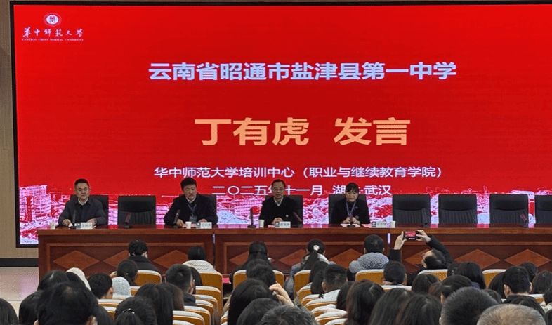 学员代表、云南省昭通市盐津县第一中学教师丁有虎发言。他向精心组织此次培训的云南省教育厅和华中师范大学表达了衷心感谢。他表示,华中师范大学作为百年学府,其深厚的教育底蕴与前沿的教学实践,为学员们搭建了一个汲取智慧、提升能力的平台。他代表全体学员郑重承诺:培训期间,将迅速转变角色,以学习者的姿态潜心向学,积极参与研讨,勤于反思总结,高质量完成各项学习任务;同时,将严格自律,恪守培训纪律。